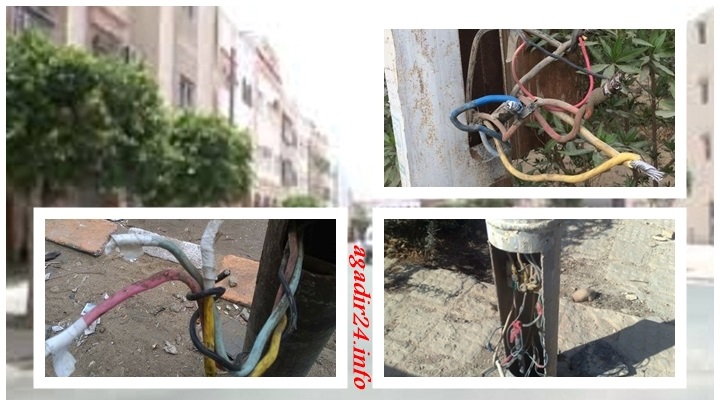 أكادير : أسلاك كهربائية مكشوفة بأحد أكبر أحياء المدينة تهدد أمن الساكنة، وسط مطالب بإصلاح الوضع .