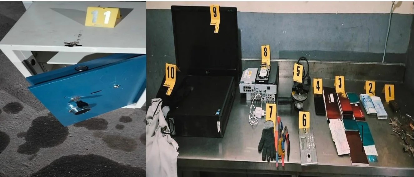 وقد أسفرت عمليات التفتيش المنجزة داخل منزل المشتبه فيه عن حجز الخزنة الحديدية المتحصلة من هذه السرقة، واسترجاع جزء من المبالغ المالية المسروقة، بالإضافة إلى مجموعة من الشيكات البنكية وسندات الأداء، فضلا عن حجز جهازين مخصصين لتخزين تسجيلات كاميرات المراقبة وجهاز تلفاز ووحدة مركزية للحاسوب، وكذا قفازين ومجموعة من المفاتيح والمعدات التي يشتبه في استعمالها في فتح الأقفال.