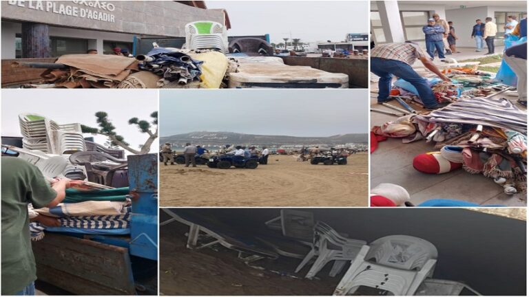 أكادير : السلطات تواصل الحرب على الاحتلال الغير المشروع للشاطئ.