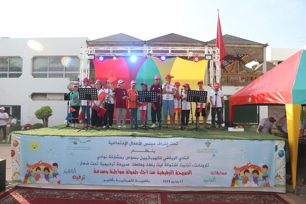 في إطار أنشطته المسطرة ببرنامجه السنوي، وتحت شعار “الصبحية الترفيهية من أجل طفولة مواطنة ومبدعة”، نظم النادي الرياضي للكهربائيين بسوس وبرعاية من مجلس الأعمال الاجتماعية للمكتب الوطني للكهرباء يوم السبت 17 يونيو2023 بقرية الكهربائيين باكادير، صباحيات ترفيهية لفائدة بنات وأبناء أطر ومستخدمي المكتب الوطني للكهرباء بمختلف أقاليم جهة سوس ماسة ؛أكادير ؛تارودانت ؛تيزنيت ؛بيوكرى وطاطا، حيت شملت أنشطة ترفيهية وتربوية وورشات في المسرح والرسم، فضلا عن فقرات فنية واستعراضية، استمرت طيلة اليوم.