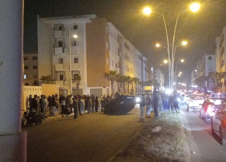 شهدت إحدى الطرق الرئيسية بحي السلام بمدينة أكادير، مساء اليوم الاثنين، حادث انقلاب مروع لسيارة خفيفة، وذلك نتيجة للقيادة الاستعراضية المتهورة التي قام بها مجموعة من الشباب.