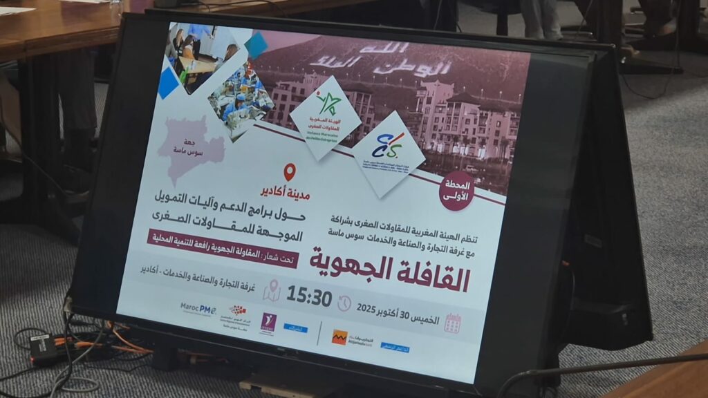 نظمت غرفة التجارة والصناعة والخدمات لجهة سوس ماسة بشراكة مع الهيئة المغربية للمقاولات وبدعم من التجاري وفا بنك وبتعاون مع المركز الجهوي للاستثمار سوس ماسة والوكالة الوطنية لإنعاش التشغيل والكفاءات (أنابيك) ومغرب المقاولات (Maroc PME) يوم الخميس 30 أكتوبر 2025 بمقر الغرفة بأكادير، المحطة الأولى من القافلة الجهوية حول برامج الدعم وآليات التمويل الموجهة للمقاولات الصغرى، تحت شعار:
