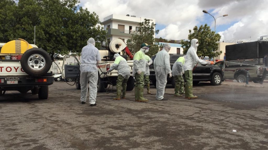 مجهودات مضنية تتكرر كل يوم بأكثر من موقع وذلك في اطارالاجراءات الاحترازية والوقائية لمجابهة فيروس كورنا المستجد والحد من انتشاره حفاظاعلى السلامة الصحية للمواطنين .بمعدات وآليات مختلفة ضمنها تابعة للمديرية العامة للوقاية المدنية التي انخرطت بدورها هذه الايام في مهام عديدة منها التكفل بنقل الحالات المشتبه إصابتها بالفيروس إلى المستشفيات المعدة لذلك باحتياطات تعقيمية ومهنية عالية وصارمة.