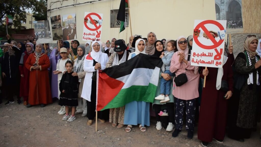 كما أعرب المحتجون عن استحسانهم لمسار التضامن المغربي الشعبي مع القضية الفلسطينية منذ بدايتها، ودعوة الدولة وكل الانظمة العربية لقطع علاقاتها، ووقف مسار التطبيع مع الكيان الصهيوني كمطلب شعبي ملح.
