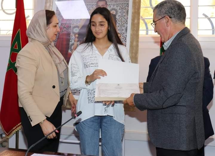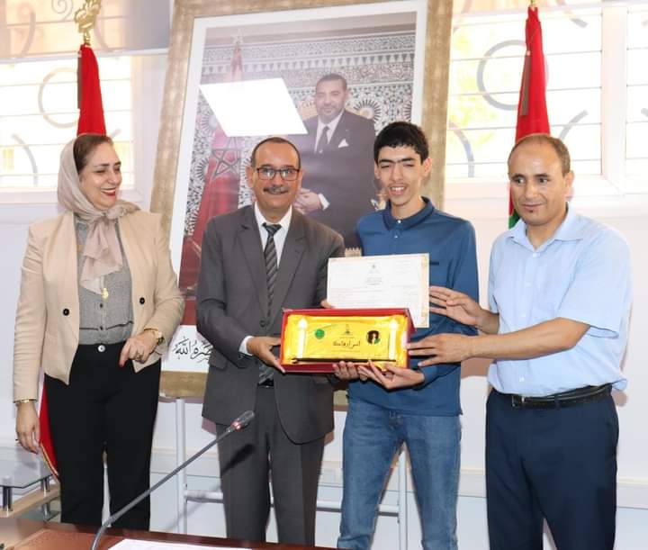 وخلال هذا الحفل الجهوي، والذي حضره المديرون الإقليميون بكل من انزكان ايت ملول واكادير ادوتنان واشتوكة أيت باها والسيدة و رؤساء الأقسام والمصالح بالأكاديمية ومديري المؤسستين التعليميتين وأولياء التلميذ والتلميذة المحتفى بهما، هنأت مديرة الأكاديمية التلميذ والتلميذة المتوجين على هذا التميز، والنتائج التي تم تحقيقها، وطنيا، وجهويا، والتي تترجم المجهودات الذاتية والجماعية للأطر التربوية والإدارية وأسرالمتعلمين، كما سلمت السيدة المديرة خلال هذا الحفل تذكارا رمزيا للمحتفى بهما إلى جانب شواهد البكالوريا في جو احتفالي بهيج وذلك بحضور مختلف مكونات منظومة التربية والتكوين بجهة سوس ماسة.