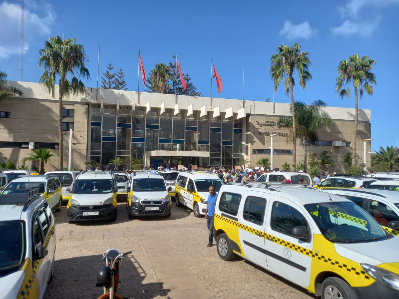إكتسحت صباح اليوم الإثنين الرابع من شتنبر الجاري، عشرات سيارات الأجرة من الصنف الأول والمحسوبة على عمالة أكادير إداوتنان، الساحة المقابلة لقصر بلدية أكادير، فيما اتخدت عشرات أخرى ساحة ولي العهد وجزء من ساحة الأمل وبعض الشوارع والأزقة المجاورة موقفا لها، وذلك تنفيذا لوقفة احتجاحية دعت لها تنسيقية مهنية تضم أرباب وسائقي سيارات الأجرة الكبيرة بأكادير.