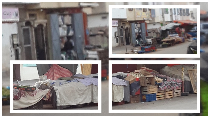 وعانوا كذلك من الضجيج وكثرة الحركة ليل نهاربعدما تحول الشارع وزنقة 107 إلى سوق تجاري عامر،يعمل ليل نهار وبدون توقف وإلي وقت متأخرمن الليل وهو مملوء بالباعة المتجولين ذوي العربات اليدوية والمجرورة،دون مراعاة لحرمة السكان وأمنهم وسكينتهم،ضاربين بعرض الحائط للإحتياطات الصحية الكفيلة بتجنب انتشار كوفيد 19 سواء وسط الباعة أو الزبناء.