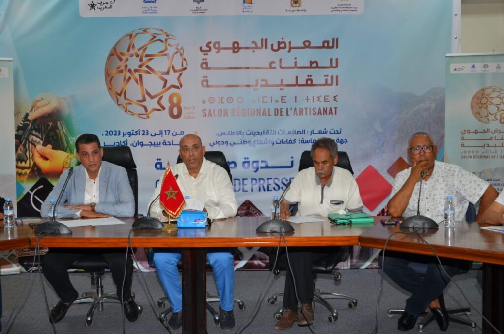 أكادير : منظمو المعرض الجهوي للصناعة التقليدية في نسخته الثامنة يستعرضون حيثيات التنظيم في ندوة صحفية.