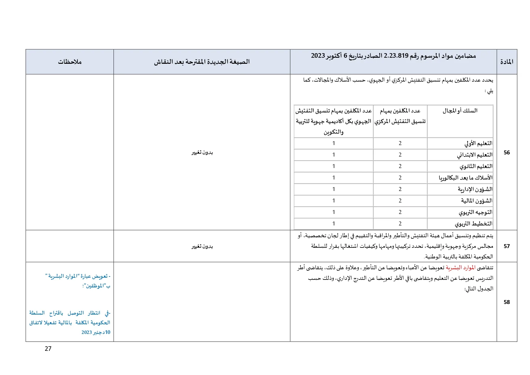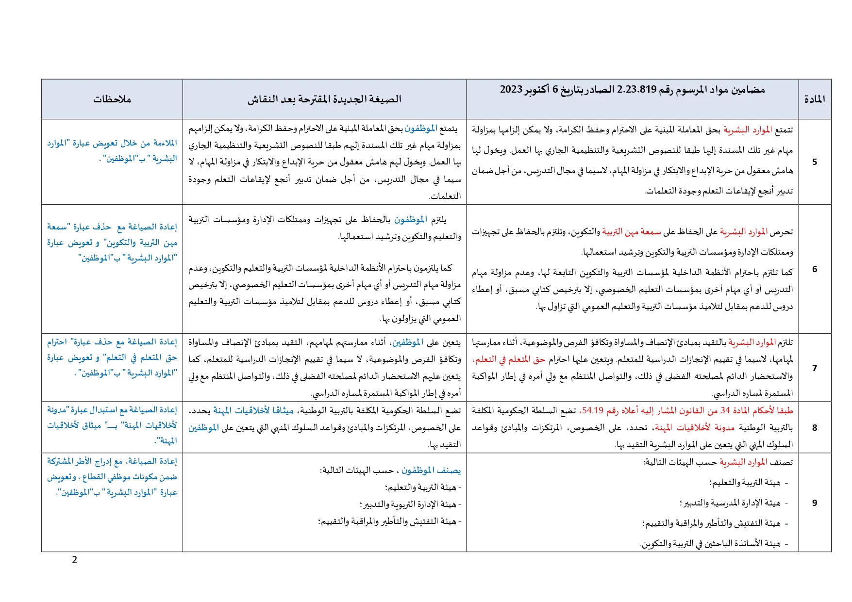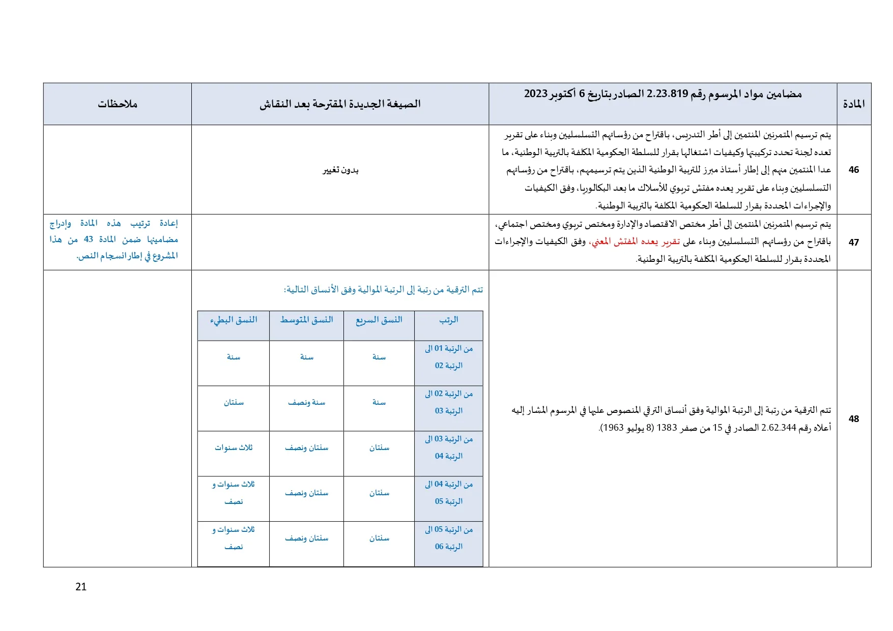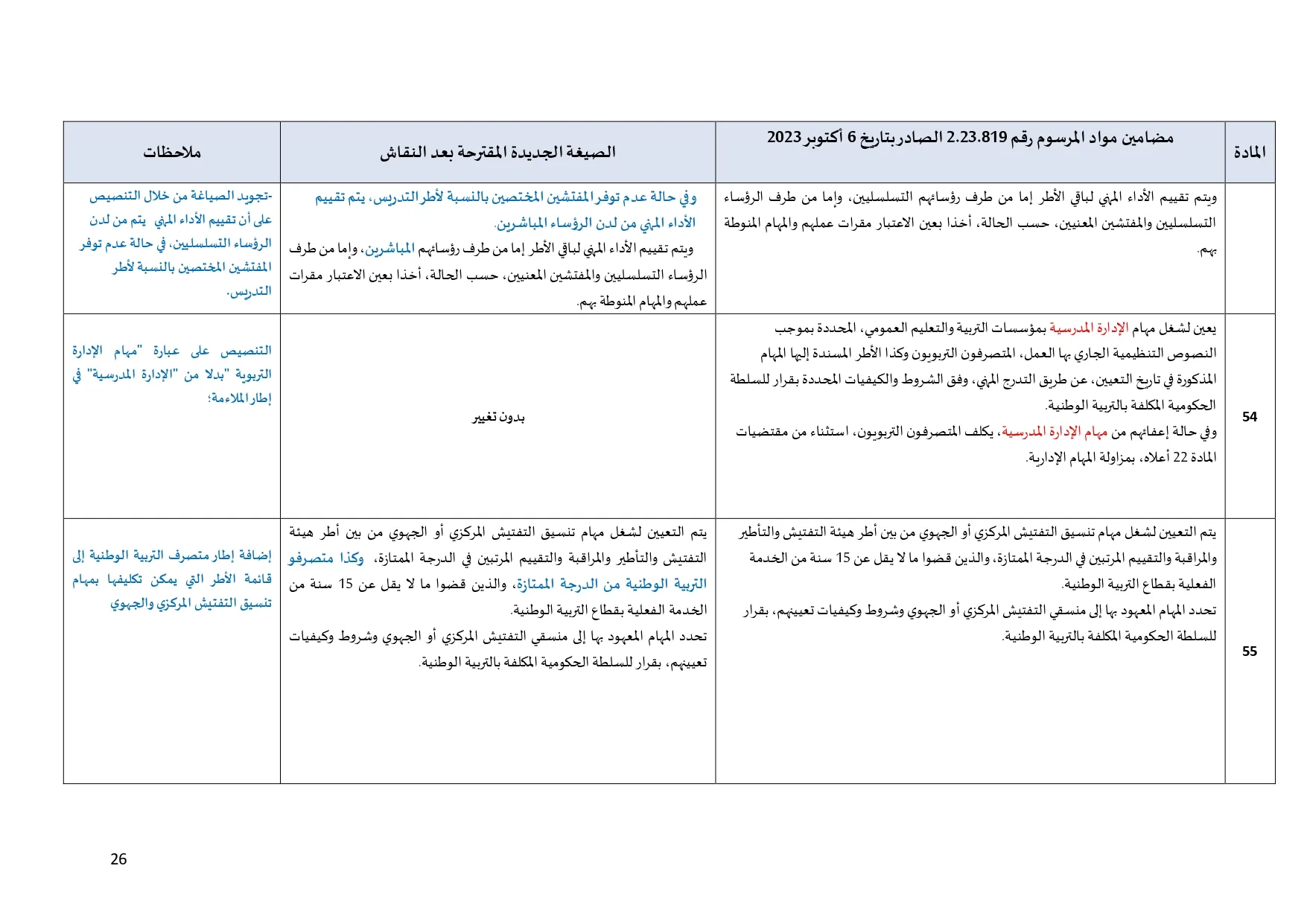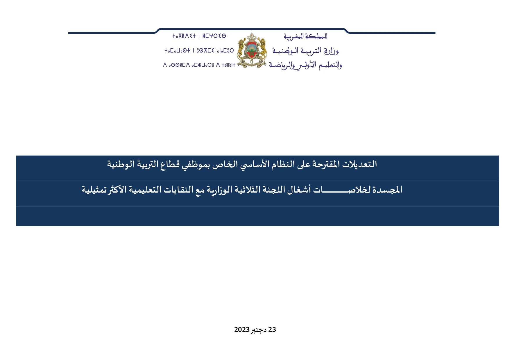 توصلت أكادير 24 بجدول التعديلات المقترحة على النظام الأساسي الجديد الخاص بموظفي قطاع التربية الوطنية المجسدة لخلاصات أشغال اللجنة الثلاثية مع النقابات التعليمية الأكثر تمثيلية.