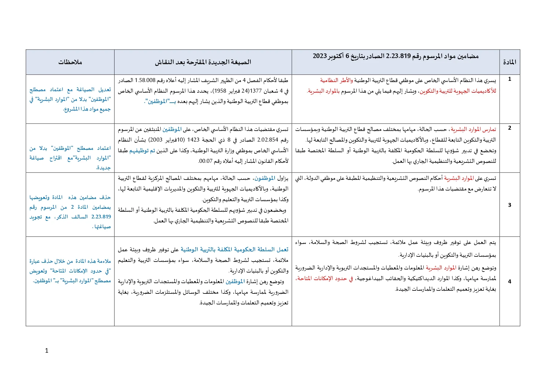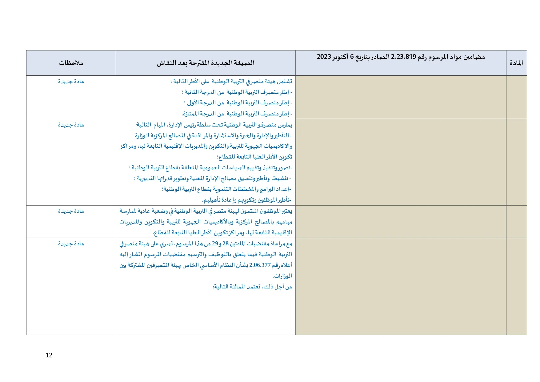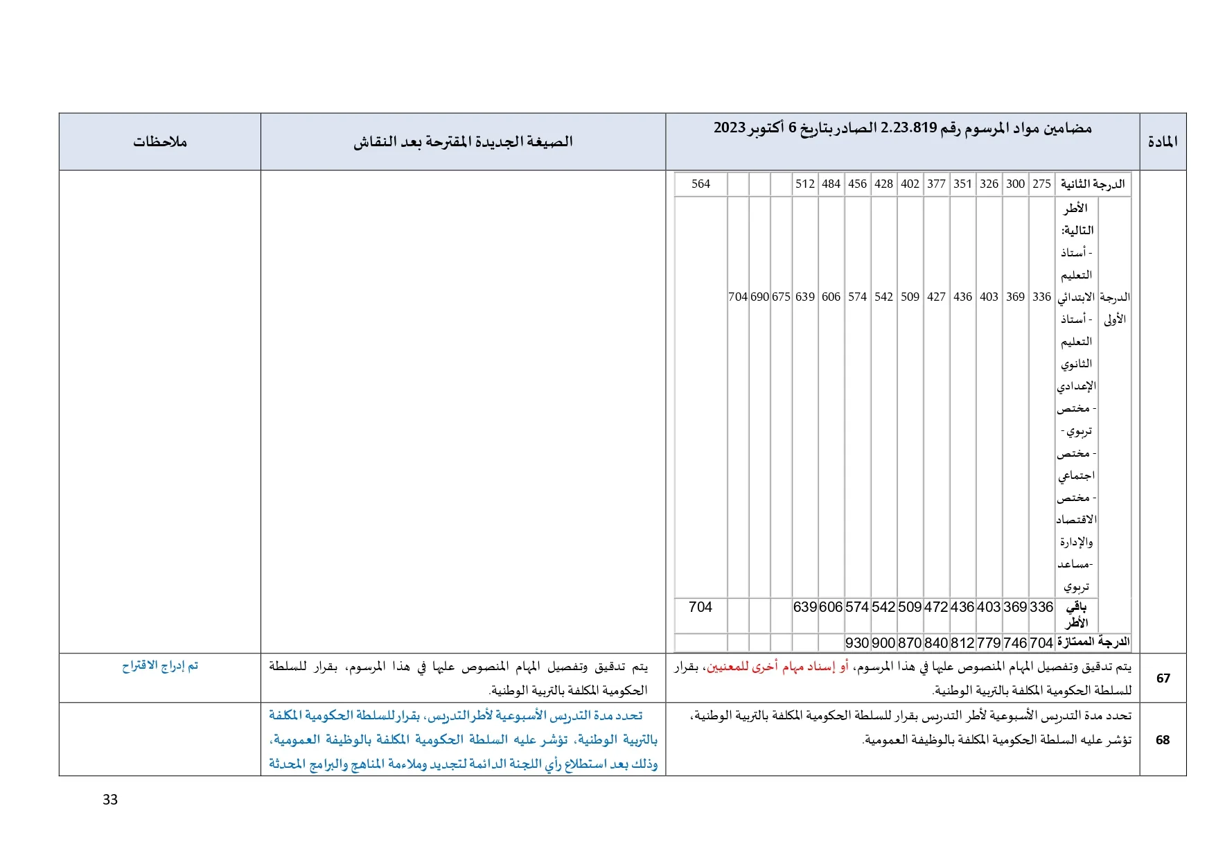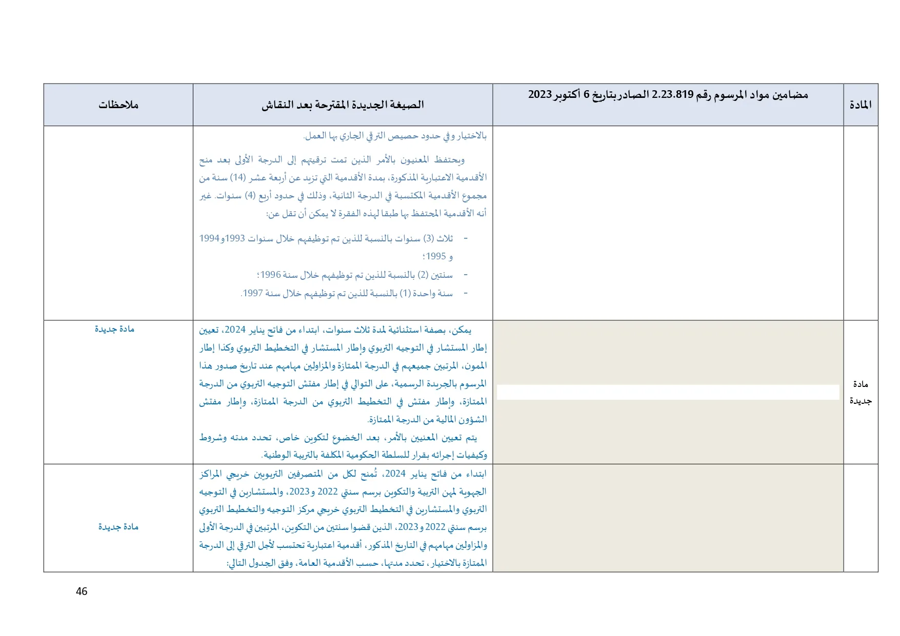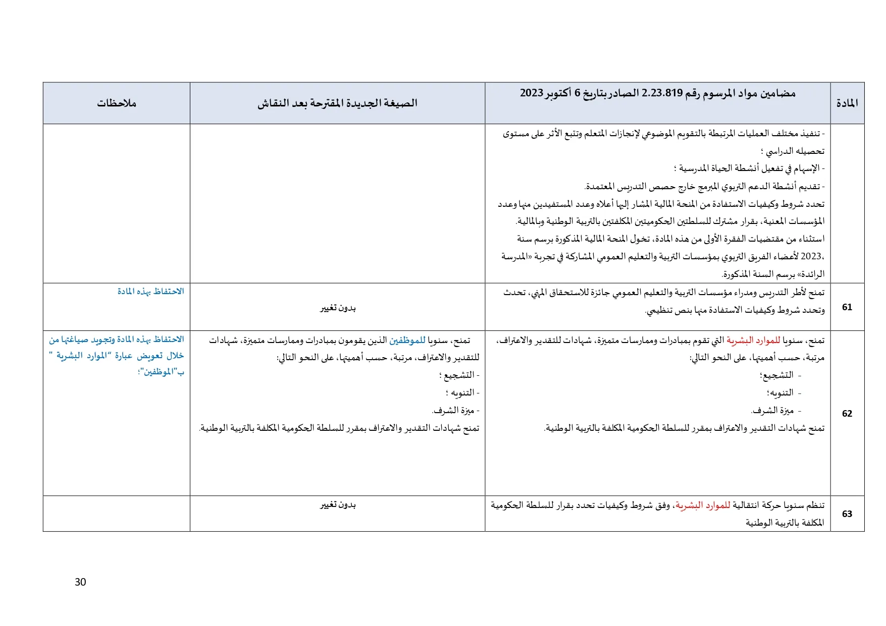 توصلت أكادير 24 بجدول التعديلات المقترحة على النظام الأساسي الجديد الخاص بموظفي قطاع التربية الوطنية المجسدة لخلاصات أشغال اللجنة الثلاثية مع النقابات التعليمية الأكثر تمثيلية.
