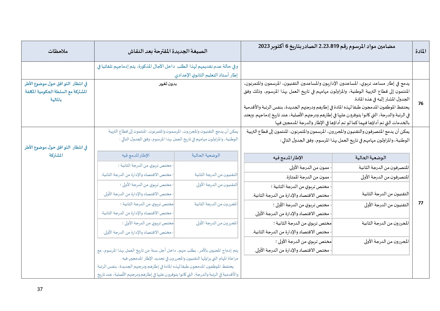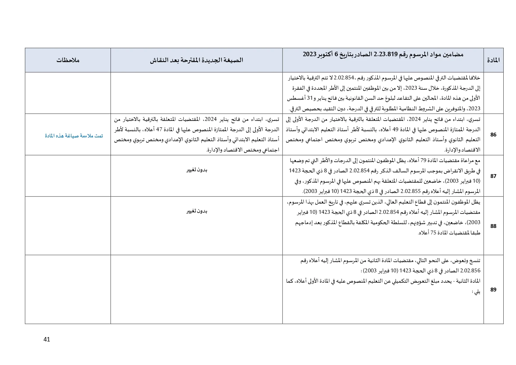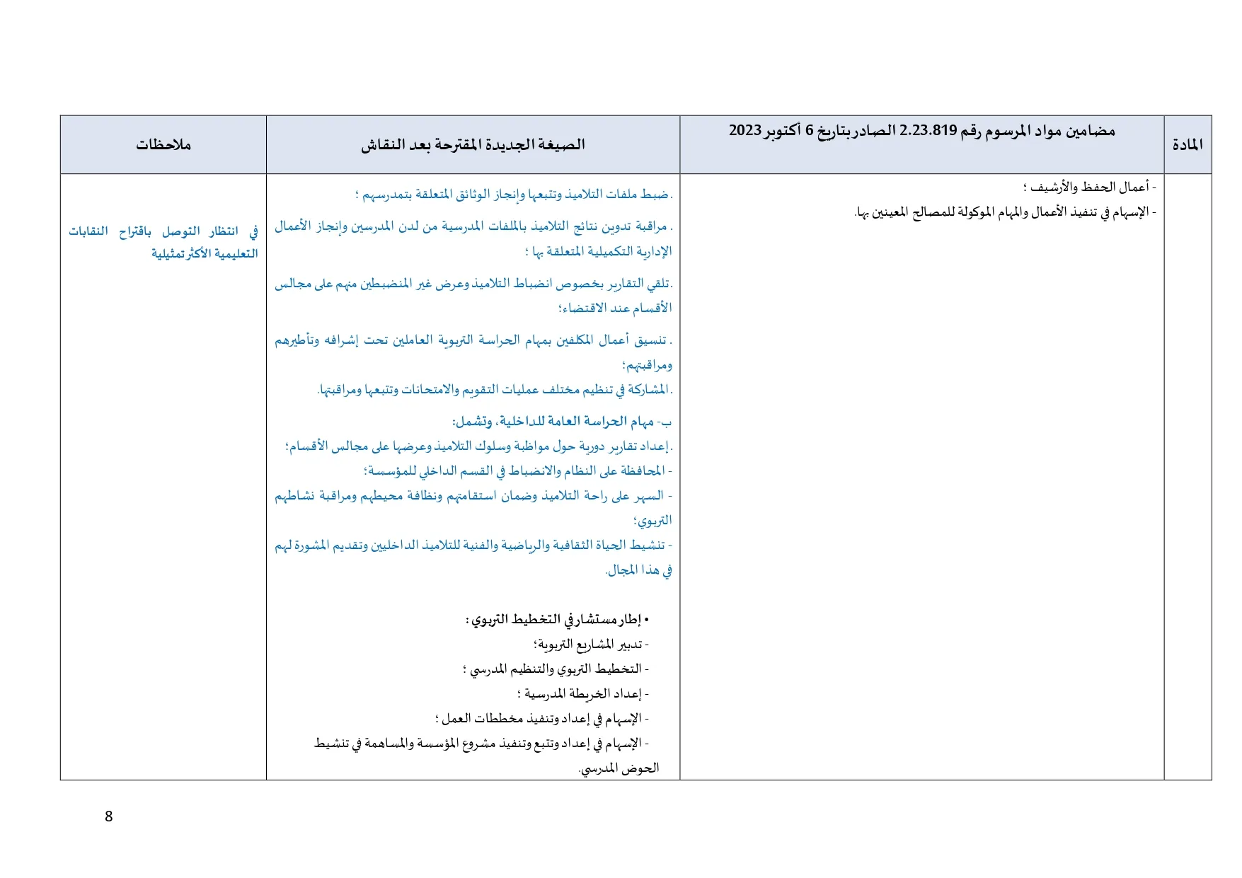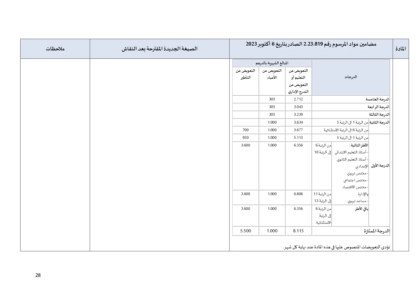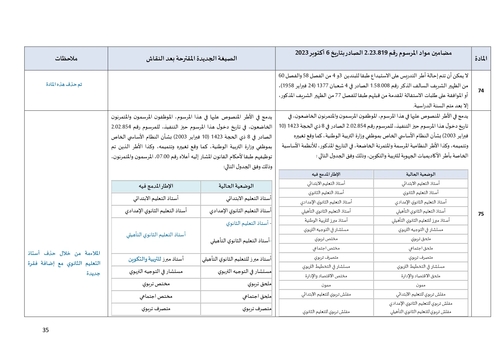 توصلت أكادير 24 بجدول التعديلات المقترحة على النظام الأساسي الجديد الخاص بموظفي قطاع التربية الوطنية المجسدة لخلاصات أشغال اللجنة الثلاثية مع النقابات التعليمية الأكثر تمثيلية.