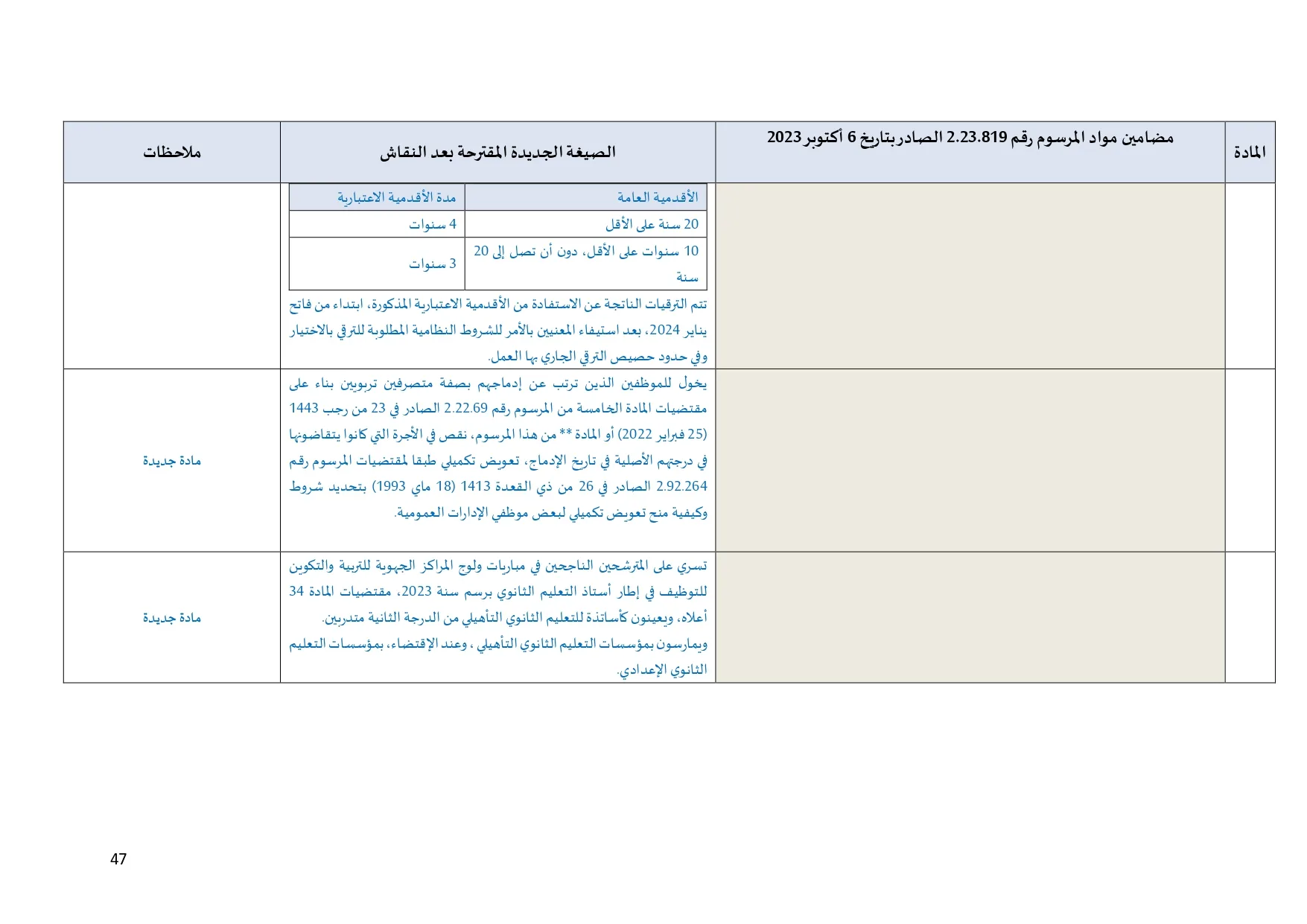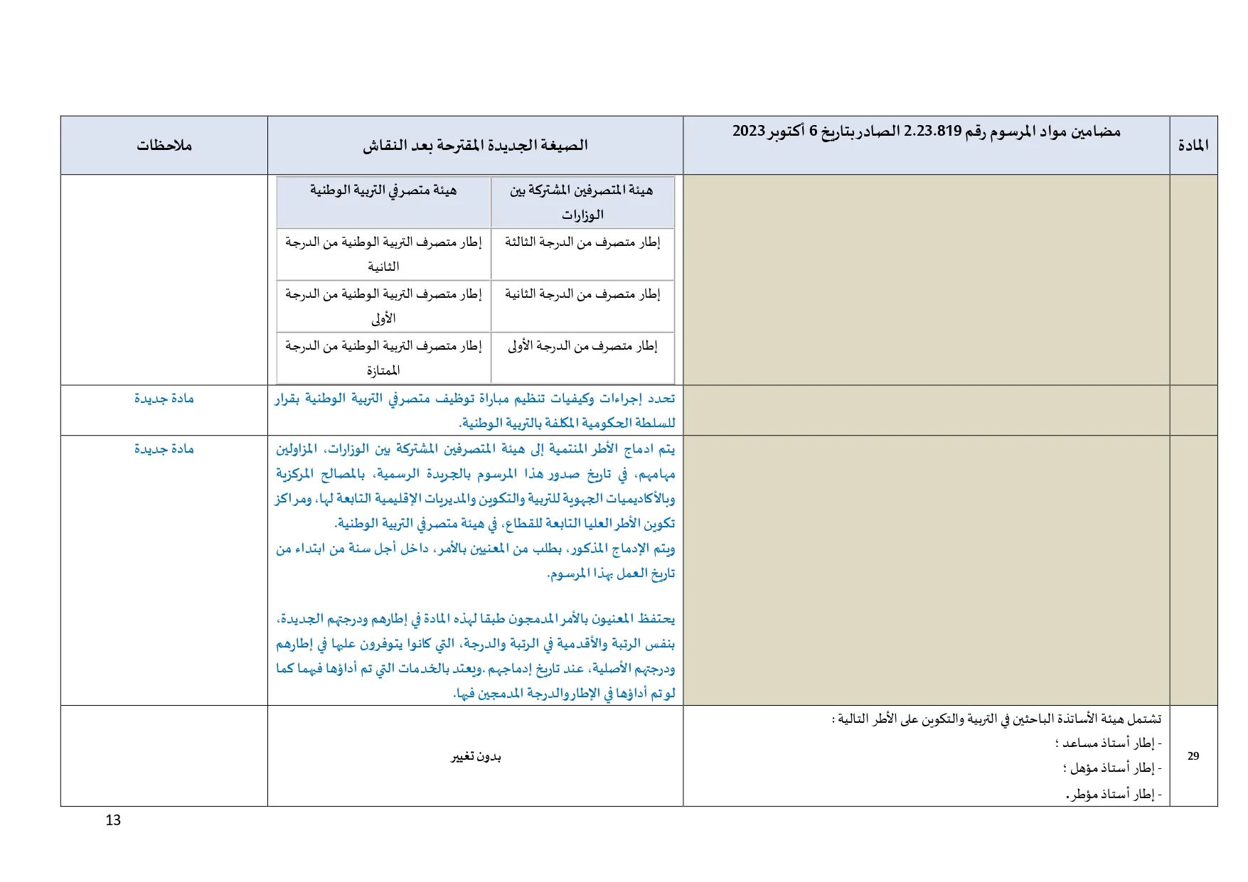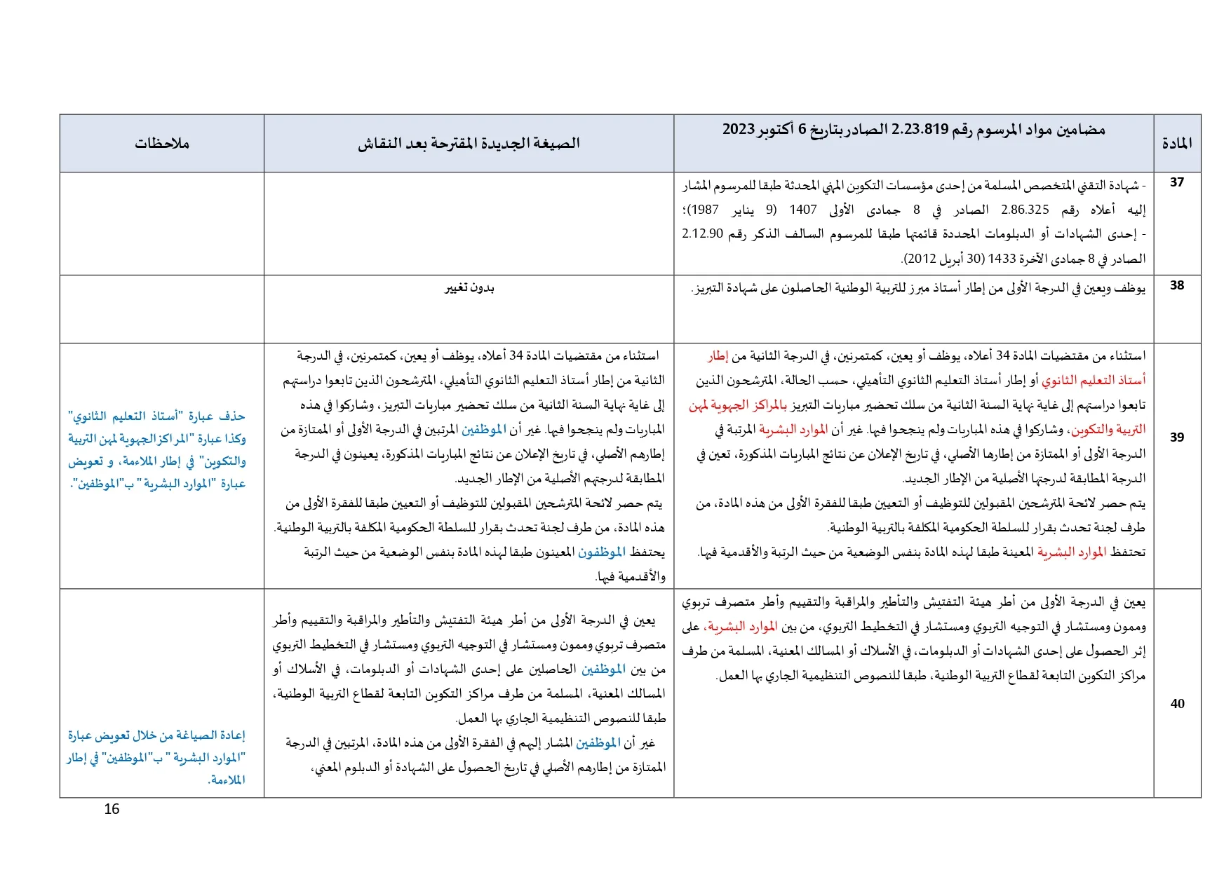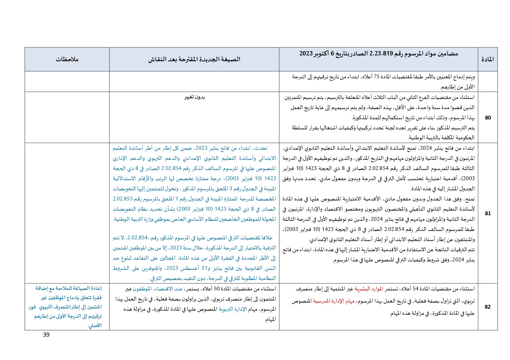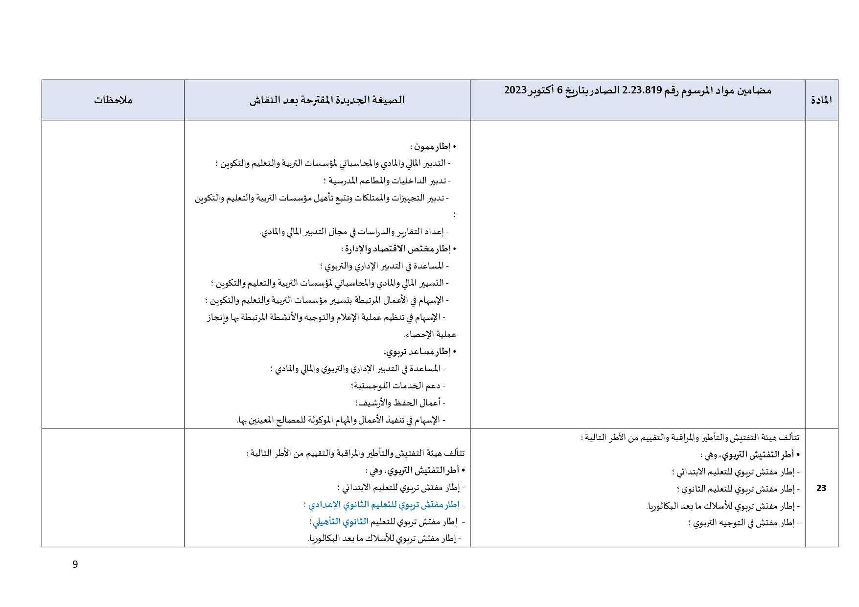 توصلت أكادير 24 بجدول التعديلات المقترحة على النظام الأساسي الجديد الخاص بموظفي قطاع التربية الوطنية المجسدة لخلاصات أشغال اللجنة الثلاثية مع النقابات التعليمية الأكثر تمثيلية.
