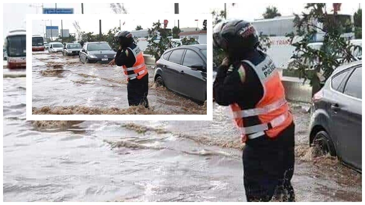 أثارت صورة شرطي ينظم حركة المرور بمدينة الدار البيضاء وسط السيول إعجاب المغاربة، حيث نوهوا بهذا الشرطي الذي استمر في تأدية واجبه غير آبه بالمياه التي غمرته من كل حدب وصوب.