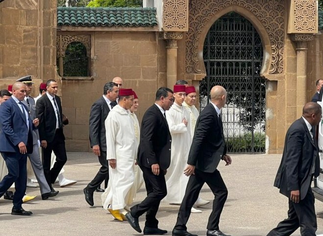 وفي جو من الخشوع، انطلق الموكب الرسمي مشيا على الأقدام، يتقدمه صاحب السمو الملكي ولي العهد الأمير مولاي الحسن وصاحب السمو الملكي الأمير مولاي رشيد باتجاه المسجد الأعظم، وجموع المؤمنين من بينهم أطفال وطلبة الكتاتيب القرآنية وعدد من طلبة معهد محمد السادس لتكوين الأئمة المرشدين والمرشدات، تتضرع إلى الباري جلت قدرته بالدعاء والاستغفار، بأن يسقي عباده وبهيمته، وينشر رحمته، ويحيي بلده الميت، فهو سبحانه وتعالى الملاذ والمرتجى، مصداقا لقوله عز وجل “وهو الذي ينزل الغيث من بعد ما قنطوا وينشر رحمته”.