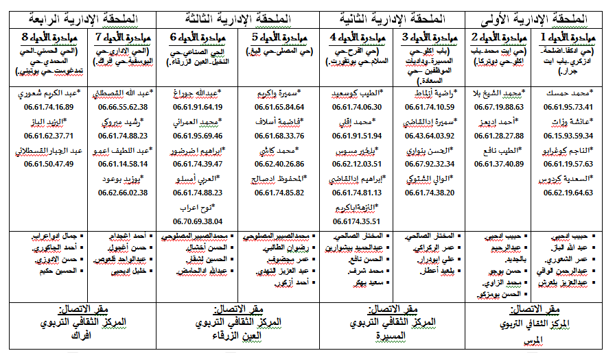ووضعت البلدية رعهن إشارة المواطنين جدولا يتضمن جميع أرقام المسؤولين على مبادرة الأحياء وفق الجدول التالي :