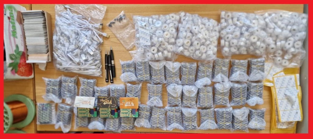 وعثر بحوزة الموقوفين، على 220 بطاقة إلكترونية من نوع VIP، و393 سماعة لا سلكية دقيقة، و180 هاتفا محمولا، علاوة على 208 من السماعات السلكية، و180 خيط كهربائي للشحن ومجموعة من قطع الغيار الخاصة بالمعدات الإلكترونية.