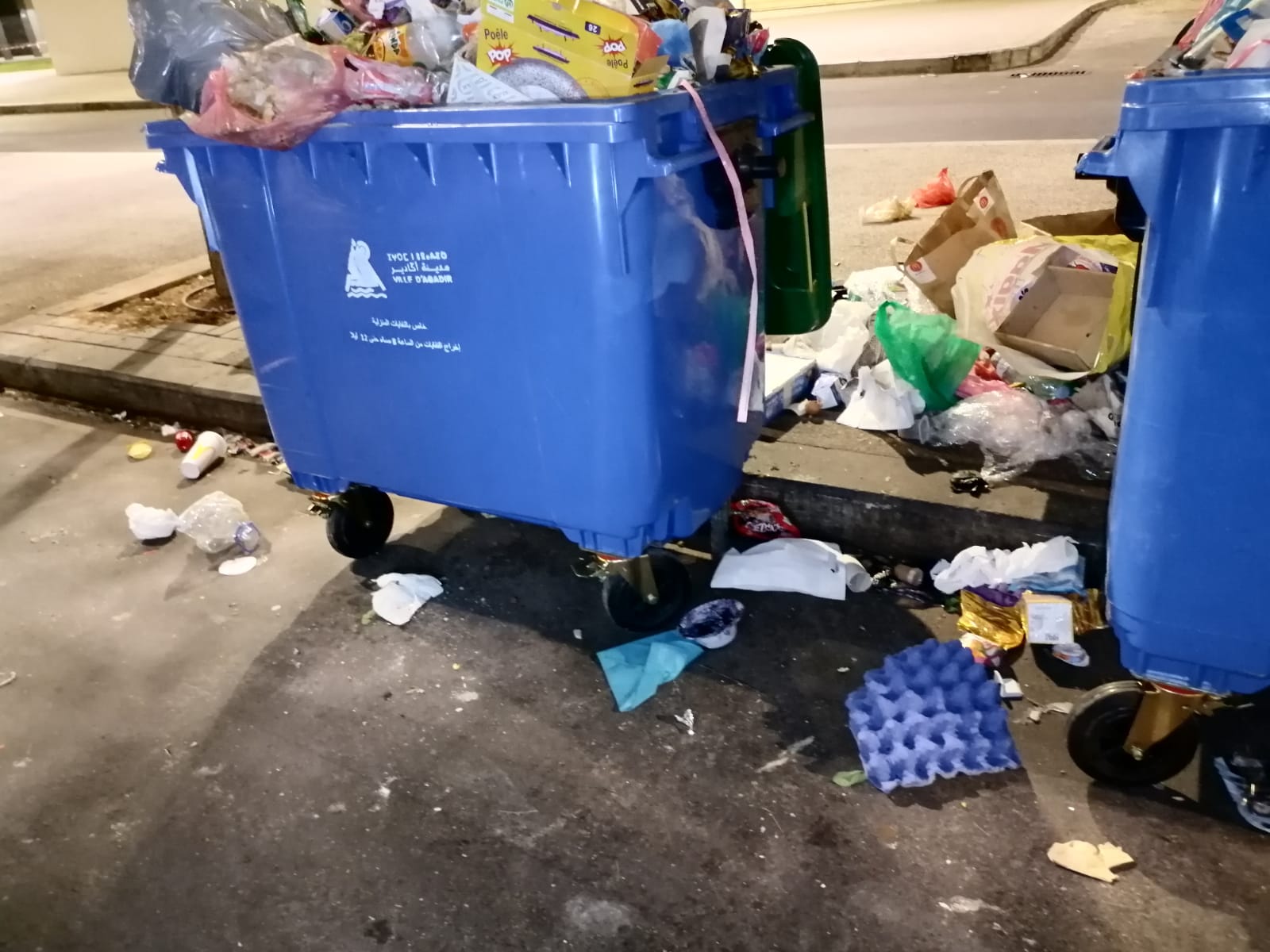 من أبرز مظاهر هذه الأزمة هو الوضع الكارثي لحاويات الأزبال المنزلية. ففي الوقت الذي شهدت فيه أحياء أخرى بمدينة أكادير مبادرات لاستبدال وتجديد هذه الحاويات بأخرى عصرية وجديدة، ظلت حاويات الحي المحمدي على حالها، مهترئة وغير صالحة للاستعمال، بل وتساهم في تفاقم المشكلة بدلاً من حلها. هذه الحاويات القديمة، والتي تظهرها الصور الفوتوغرافية بوضوح، أصبحت مرتعًا للحشرات والقوارض، ومصدراً للروائح الكريهة التي تزكم الأنوف، وتشكل تهديداً مباشراً على الصحة العامة للسكان، خصوصاً الأطفال وكبار السن.