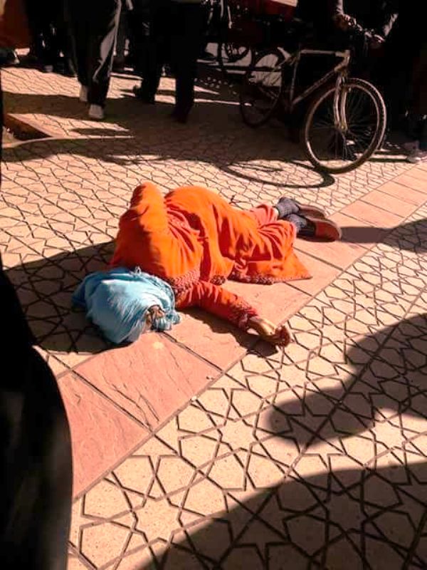 خرجت الزوجة من باب المحكمة رفقة بنت أخوها وحاول الحسين بمكالمتها عبر الهاتف من أجل ايقافها ومحاولة الصلح معها ، وكانت المسافة بينهما لا تتعدى 50 مترا ، الا ان هاتفها كان مغلقا ..! وسارع الخطى ليتحق بزوجته وبنت أخيها ، وطلب من الزوجة أن تتفاهم معه .. الا ان بنت أخيها صرخت فى وجهه وبصوت عال سمعه كل من كان مارا بالشارع :” … معندكش الحق تتكلم معها .. وسير بحالك الا عندك شي شغل !!! ” وكان جوابه :” وخا ا لالا !! ” .. فأسدل من جيبه سكينا واتجه نحو زوجته ووجه لها اربعة طعنات قوية اخترقت القلب والظهر .. وهو يدرى ما يفعله ويرى انها طعنته في شرفه وتسببت فى تعاسته .. حسب قوله .. وظل فى مكانه يراقب اللحظات الأخير لزوجته وهي تسبح فى الدماء وأداة القتل بيده دون أن يشعر بالندم ، ينتظر قدوم السلطات المحلية والشرطة .