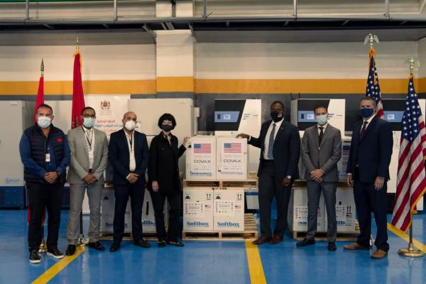 وأعلنت السفارة الأمريكية بالمغرب بأن القائم بالأعمال الأمريكي لورانس راندولف، ومسؤولون في وزارة الصحة، ومدير بعثة الوكالة الأمريكية للتنمية الدولية في المغرب، بروك إيشام، انتقلوا إلى مطار الدار البيضاء لاستلام شحنة تضم أكثر من 850 ألف جرعة من اللقاح المضاد لكوفيد 19، قادمة من أمريكا إلى المغرب.
