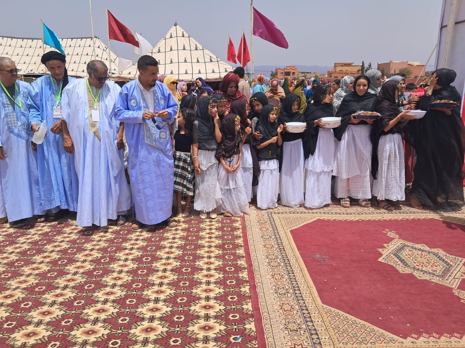 وقدّمت إحدى القبائل الصحراوية ناقة كهدية رمزية، تخللتها طقوس ضيافة مغربية أصيلة من تمر وحليب، وسط تصفيقات وزغاريد.