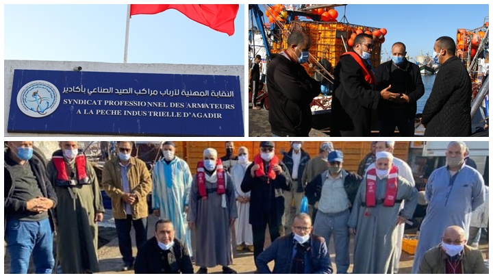 نظمت النقابة المهنية لأرباب مراكب الصيد الصناعي بأكادير، صباح يوم الأربعاء 23 دجنبر 2020، حملة تحسيسة و إرشادية، حول السلامة البحرية لفائدة بحارة الصيد الساحلي العاملين بميناء أكادير، تحت شعار ” تطوير منظومة السلامة البحرية و الإرتقاء بالعنصر البشري و الحفاظ على الأرواح “.