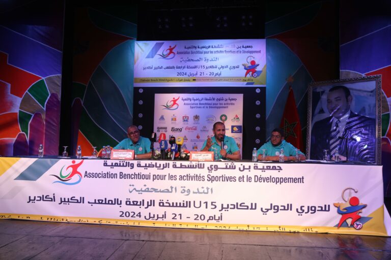 في إطار استعداداتها لتنظيم النسخة الرابعة للدوري الدولي لأكادير U15 يومي 20 و 21 أبريل الجاري، انعقدت مساء أمس الأربعاء 17 أبريل 2024 بأحد الفنادق المصنفة بالمدينة ندوة صحفية تقديمية من طرف جمعية بن شتوي للانشطة الرياضية والتنمية وهي الجهة المنظمة لهذا الحدث الرياضي الكروي الخاص بالفئات الصغرى والذي أضحى سنة بعد أخرى يتكرس كتقليد سنوي يؤتث الفضاء الرياضي المحلي بمشاركة فرق محلية ووطنية وخارجية.