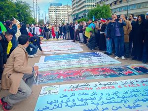 وتميزت المسيرة، بحضور صغار التجار من أصحاب محلات المحلات التجارية الكبرى ومحلات “البقالة” حيث رفع المشاركون مطالبهم لمطالبة الدولة بالتدخل ورفع الضرر عنهم وتوفير الحماية لهم.