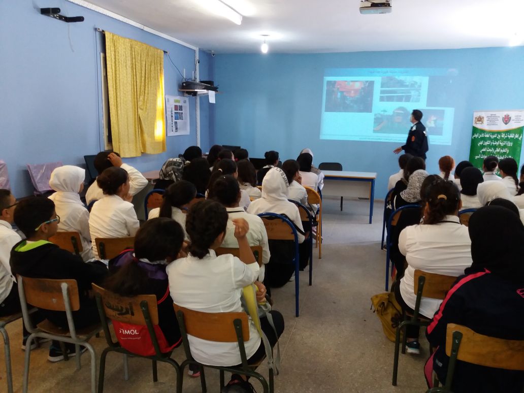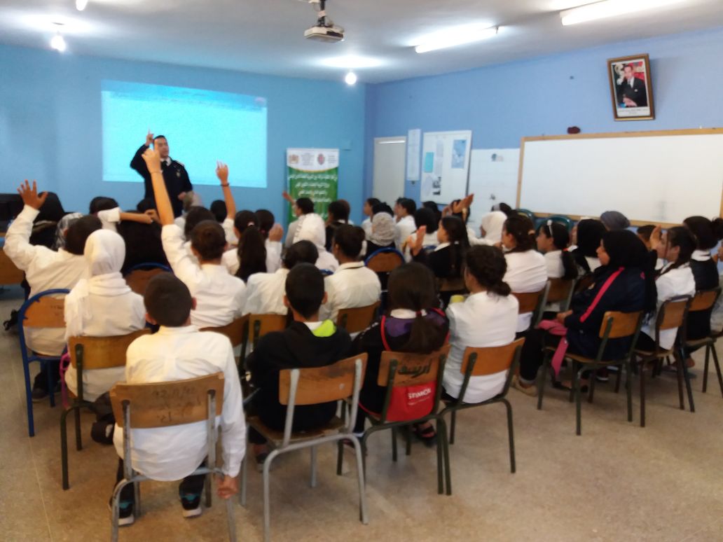 وبعد الكلمة الترحيبية للسيد المدير ، تلى احد تلاميذ المؤسسة ما تيسير من القران الكريم وبعد ذلكقام الحاضرون بتلاوة النشيد الوطني. بسط المؤطر عرضا قيما تمحورت مواده حول مفهوم المواطنة وخصائصها و علاقتها بالحق والواجب و الشعور بالانتماء الى الوطن والاعتزاز به، وبعد ذلك استنتج التلميذات والتلاميذ مفهوم المواطنة الرقمية وتجلياتها. كما أعطى بعض الامثلة للنشاط الإجرامي الرقمي كالمس بنظم المعالجة الآلية للمعطيات وقرصنة المواقع الإلكترونية. والولوج غير المشروع إلى مواقع إلكترونية أجنبية ومحلية وتغيير المعطيات والبيانات المعلوماتية الواردة بها…….