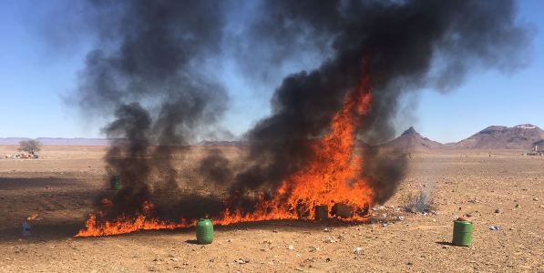 وقدرت كمية المحجوزات المتلفة ب 1100 كيلوغرام من مخدر الشيرا.