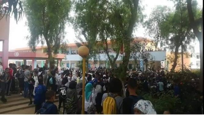 وكان تلاميذ المؤسسة المذكورة، قد أعلنوا صباح اليوم السبت، عن خوضهم اعتصام مفتوح داخل ساحة المؤسسة رافضين الالتحاق بحجرات الدراسة، و مرددين شعارات قوية، قبل أن تنتهي بأعمال شغب وتخريب تجهيزات المؤسسة.