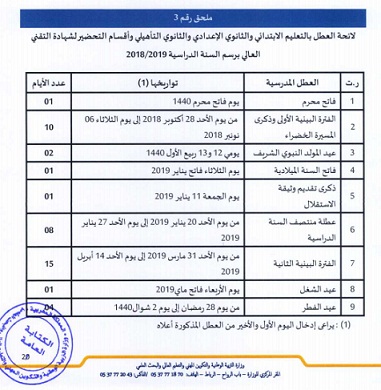 كشفت وزارة التربية الوطنية والتعليم العالي والتكوين المهني عن لائحة العطل المدرسية الخاصة بالموسم الدراسي المقبل 2018/2019 والتي عرفت بعض التغييرات.