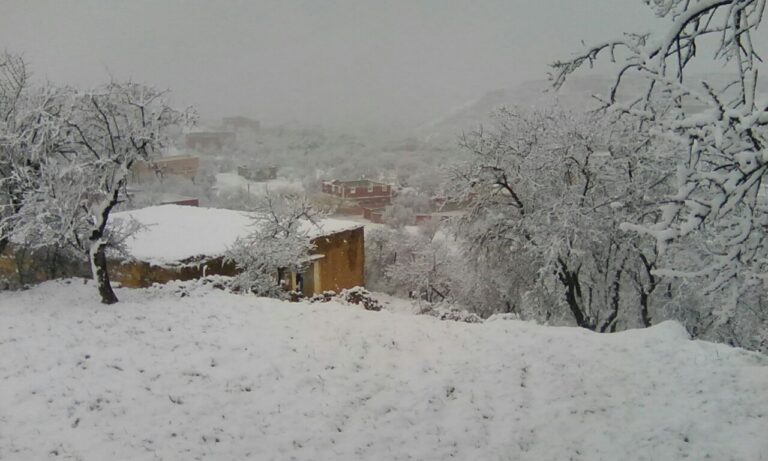 عاجل بأكادير وبالصور:الثلوج تقطع الطريق الرابطة بين أورير وإيموزار، و تحاصر ساكنة الجماعات بإداوتنان