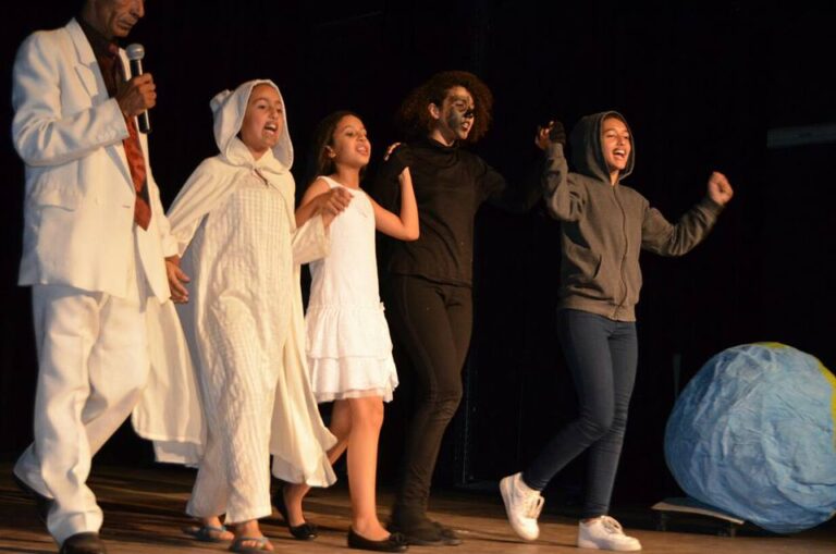 عنوان المسرحية “رسالة للإنسانية”، والممثلون أطفال صغار، من مدرسة فونتي بأكادير. أكبرهم لم يتجاوز 15 سنة، يجوبون الخشبة بكل جرأة وحماس، وهم يوجهون رسائل مباشرة لآبائهم، ومن خلالهم إلى كل الكبار الذين لا يهتمون بهذه البيئة ومخاطر تلوثها.