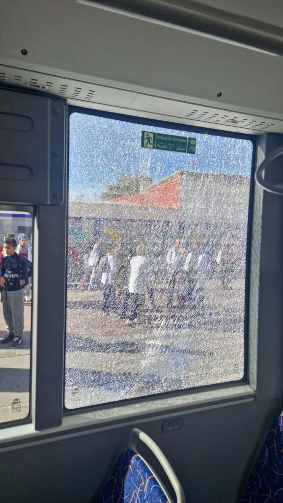 استنكر مجموعة من المواطنين تعرض إحدى الحافلات الجديدة بمدينة أكادير للرشق بالحجارة وتهشيم زجاجها الجانبي، وذلك بعد أيام قليلة فقط من انطلاق العمل بها.