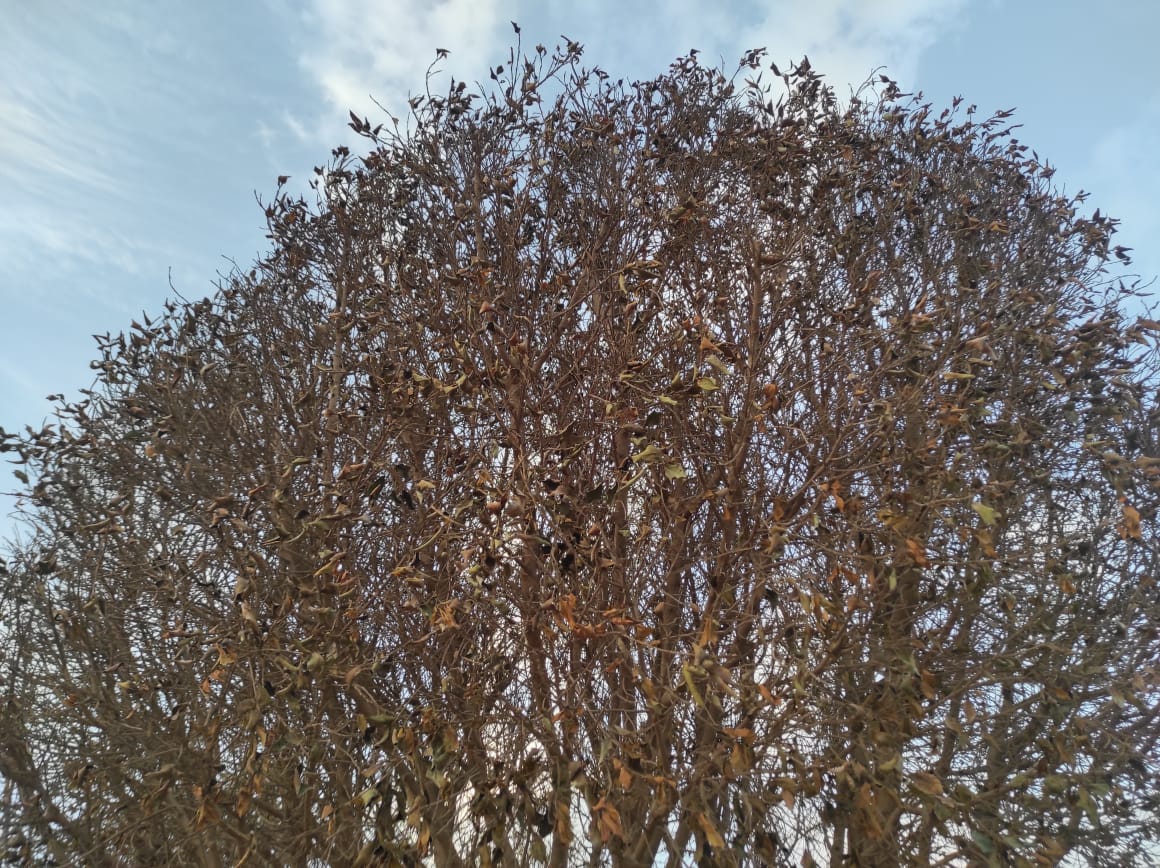 وإلى جانب ذلك، تساقطت أوراق العديد من الأشجار لتتحول إلى مجرد أغصان يابسة، الأمر الذي لاحظه العديد من سكان المدينة.