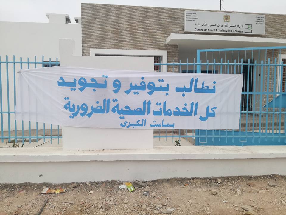 خرجت ساكنة ماسة يوم أمس الجمعة للاحتجاج على تردي الخدمات الصحية بعموم تراب المنطقة، من خلال وقفة احتجاجية دعت إليها اللجنة المحلية للدفاع عن الخدمات الصحية لماسة، و قد رفعت فيها شعارات تندد و تستنكر تردي الخدمات الصحية وتطالب بتجويدها وتوفير التجهيزات و الموارد البشرية والخدمات الضرورية كحق أساسي من حقوق الساكنة و التي تعتبر الحد الأدنى للحق في الصحة الذي ينص عليه الدستور المغربي .