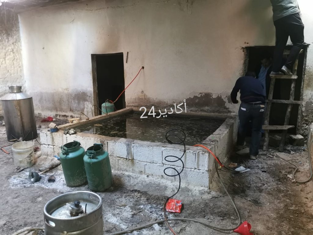 وقد مكنت هذه العملية التي قادها رئيس المركز بإشراف من قائد السرية بأكادير، من حجز ما مجموعه 20 طنا من مسكر “ماء الحياة”، منها طنين جاهزة للبيع، بالإضافة إلى مواد أولية تدخل في إعداد هذه المادة المسكرة، والتي كانت لا تزال في طور التقطير، فضلا عن حجز براميل وحاويات وقنينات غاز كانت تُستخدم في التقطير.