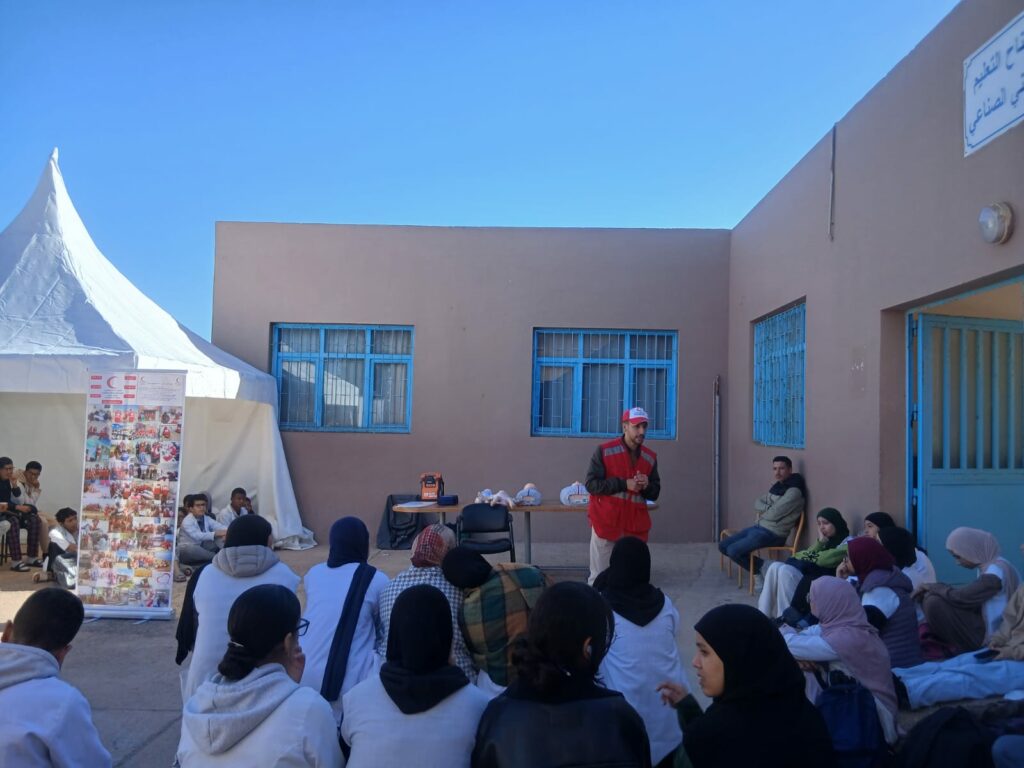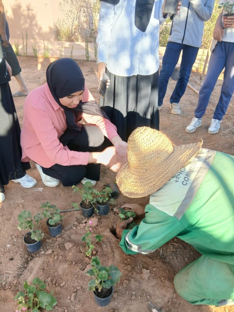 وبالتوازي مع ذلك، نظم فرع الهلال الأحمر المغربي بتيزنيت، تحت إشراف رئيسته الأستاذة راضية أزلماط، دورة تطبيقية في الإسعافات الأولية استفاد منها التلاميذ والأطر، مما ساهم في رفع الوعي الصحي واكتساب مهارات حياتية أساسية للتعامل مع الحالات الطارئة. وجسدت هذه الأنشطة جميعها تعاونا مثمرا بين المؤسسة التعليمية وشركائها، لاسيما جماعة تيزنيت التي وفرت الدعم اللوجستيكي من أدوات بستنة وشتائل ونقل النفايات ، وتأطير ميداني للتلاميذ من الفريق التقني بمصلحة المناطق الخضراء بجماعة تيزنيت، والهلال الأحمر الذي أشرف على الجانب التكويني الصحي.