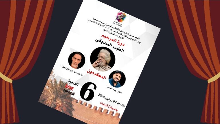 تحت شعار “ثقافة فكاهية جادة”، تعتزم جمعية التواصل تنظيم المهرجان الوطني للمسرح بتزنيت في دورته التي تحمل اسم الراحل الطيب الصديقي، وذلك خلال أيام 5 و6 و7 يوليوز 2024.