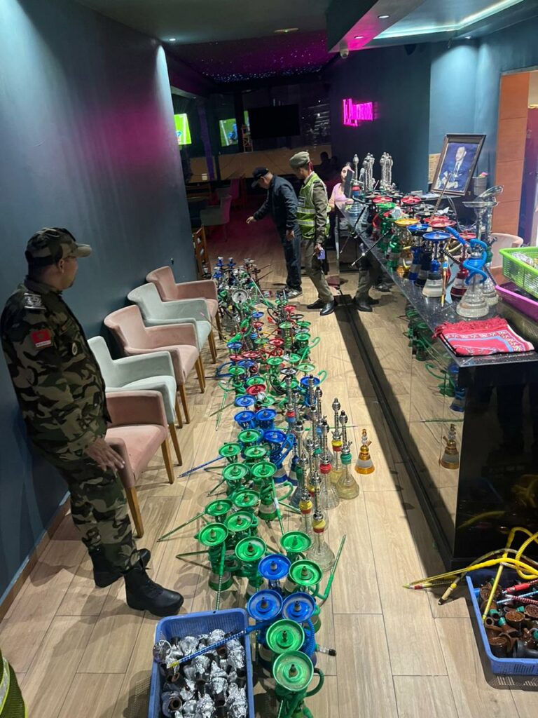 تواصل السلطة المحلية بالملحقة الإدارية الثالثة بأكادير بقيادة القائد وبمرافقة عناصر الشرطة الإدارية والقوات المساعدة، حملاتها المكثفة ضد مجموعة من المخالفات المرتبطة بمقاهي الشيشة والظواهر السلبية بالمنطقة السياحية.