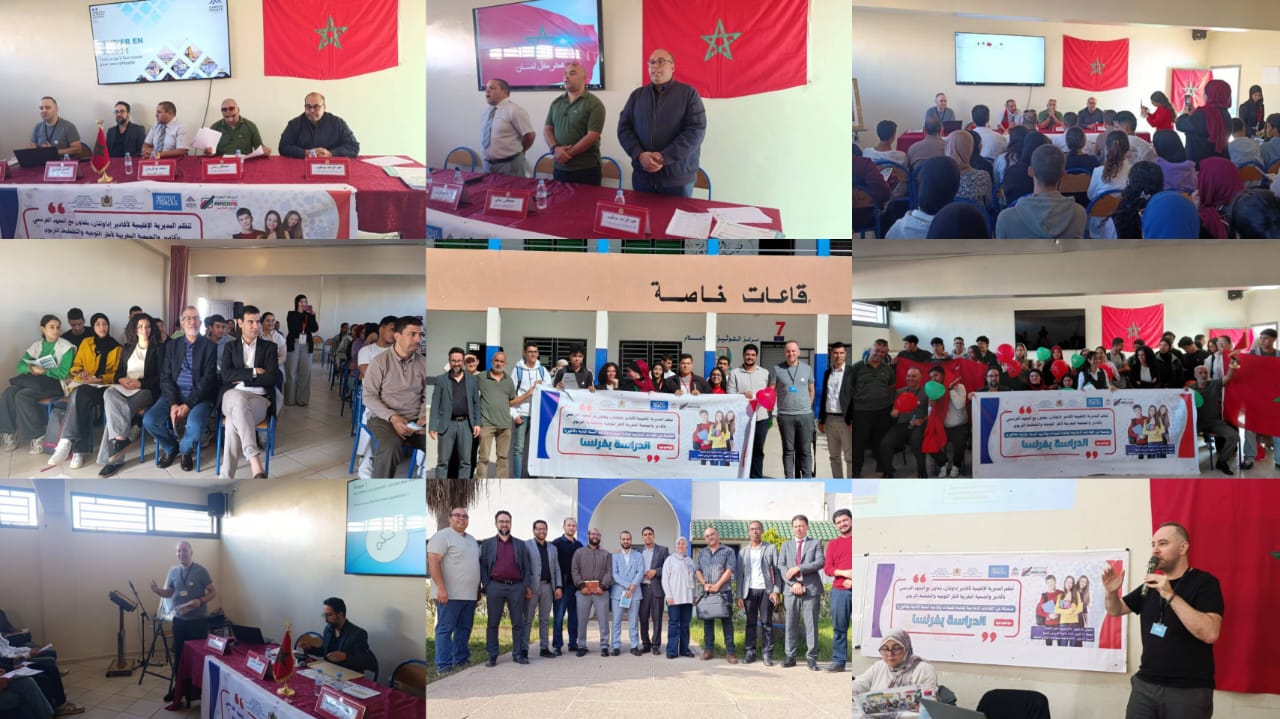 « الدراسة بفرنسا: آفاق، شروط ومسارات »، المنظمة في إطار شراكة مثمرة بين المديرية الإقليمية لأكادير إداوتنان والجمعية المغربية لأطر التوجيه والتخطيط التربوي والمعهد الفرنسي بأكادير، وذلك بهدف مواكبة التلميذات والتلاميذ الراغبين في متابعة دراستهم العليا بالمؤسسات الجامعية الفرنسية.