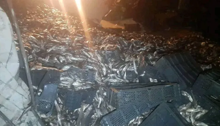 فيما تم تجنيد بعض الجرارات لإزاحة الأسماك ومخلفات الحادث من الطريق، من أجل استئناف حركة السير.
