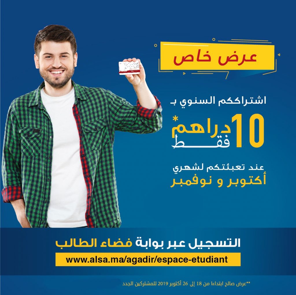 أطلقت شركة ألزا للنقل الحضري بأكادير عرضا استثنائيا جديدا للإشتراك المدرسي ب:10 دراهم فقط.