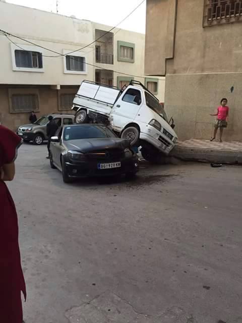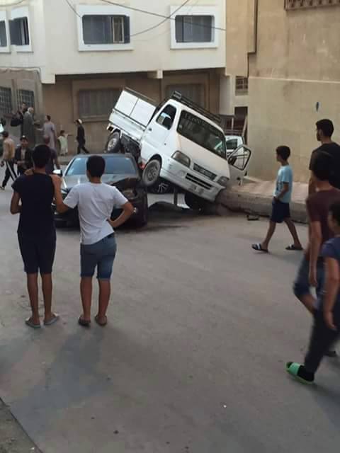 الحادث تسبب فيه سائق سيارة لنقل البضائع الذي كان يسير بسرعة جنونية دون احترام علامة “قف”، ما تسبب في دهس سيارة من نوع مرسيدس بلوحة ترقيم من الخارج.