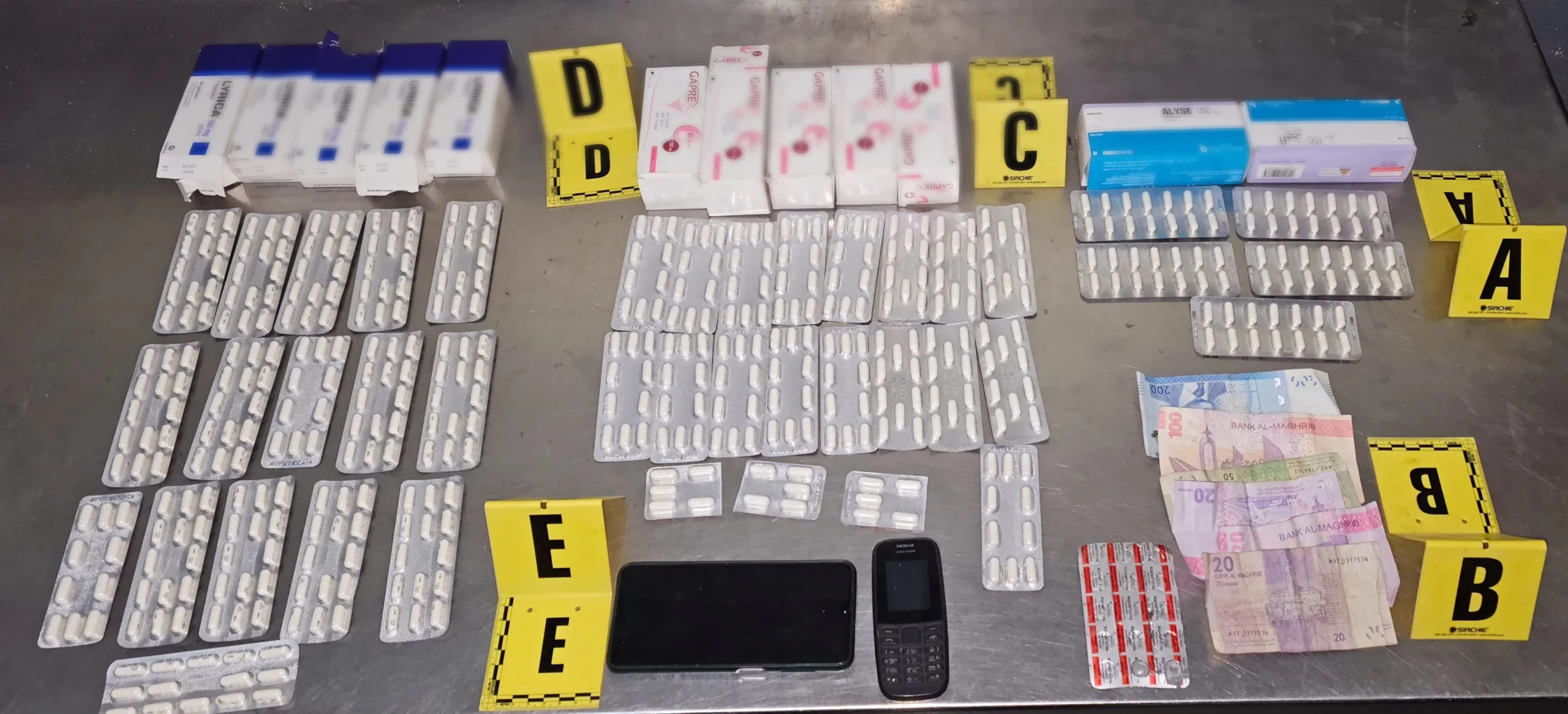 وجاءت العملية الأمنية بعد رصد تحركات مشبوهة، حيث ضبط المشتبه فيهما متلبسين داخل سيارة أجرة من الصنف الثاني، أثناء ترويجهما لكمية من الأقراص المهلوسة. وأسفر التفتيش عن العثور على 491 قرصًا مخدرًا بأنواع مختلفة، إضافة إلى مبلغ مالي يُرجَّح أنه من عائدات نشاطهما الإجرامي.