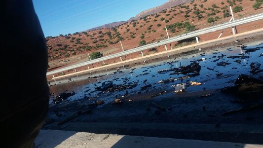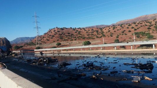وقع اصطدام قوي بين شاحنتين الاولى محملة بالفيول و الثانية متخصصة في نقل الطماطم فارغة قبيل قليل من صباح اليوم الجمعة على مستوى اركانة بالطريق السيار اكادير مراكش.