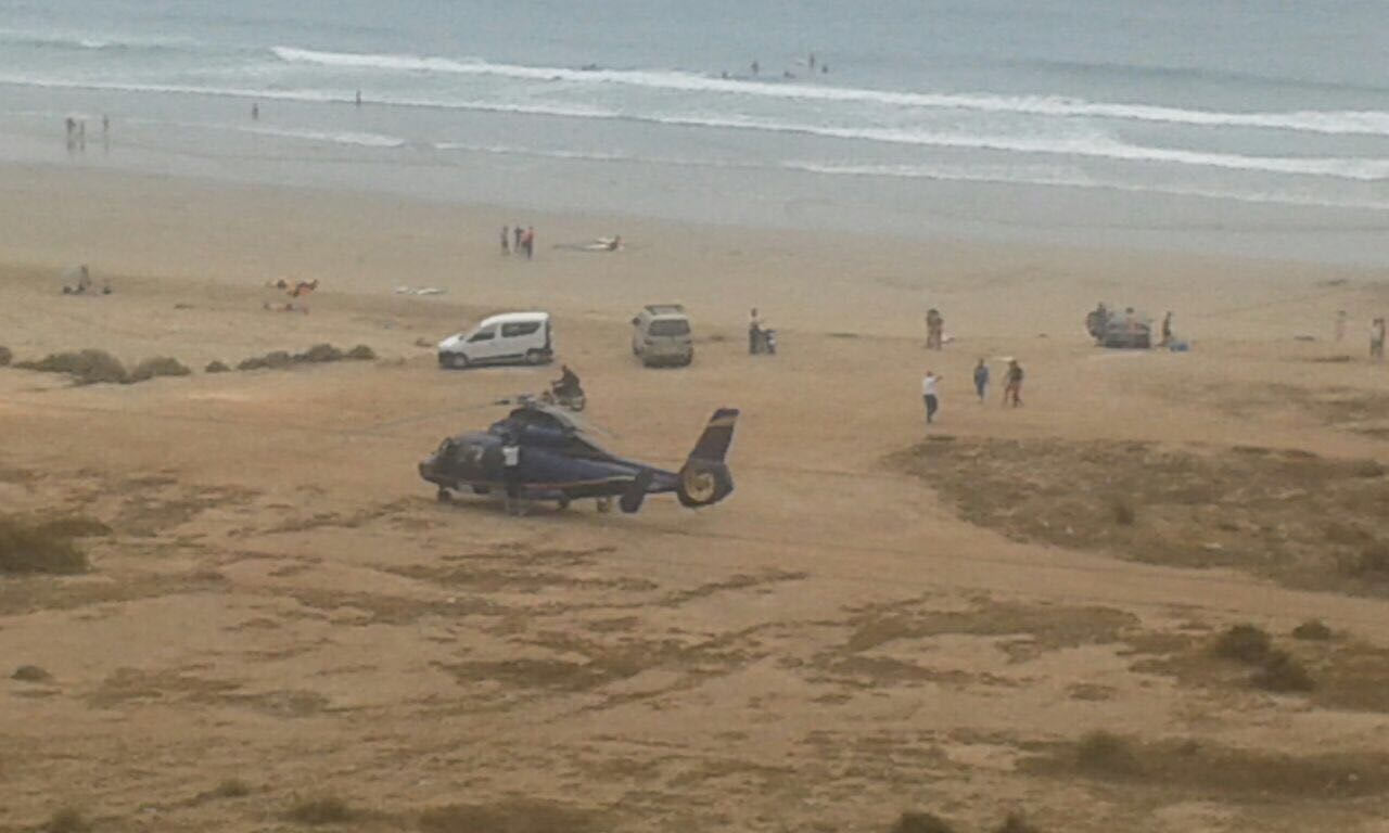 عااجل بأكادير بالصور:مروحية تقل 4 أشخاص يحملون الجنسية الفرنسية والطوغولية تهبط بشاطئ أكادير بشكل فجائي تستنفر أجهزة الدرك الملكي