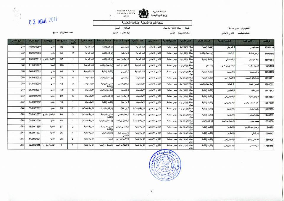 عاجل…نتائج الحركة الانتقالية المحلية للمديرية الاقليمية انزكان ايت ملول: أكادير والجهات بن عيسى - أكادير- الأربعاء 2 أغسطس 2017 - 15:12 عاجل نتائج الحركة الانتقالية المحلية للمديرية الاقليمية انزكان ايت ملول: شارك هذا المحتوى فيسبوك X واتساب تلغرام لينكدإن نسخ الرابط