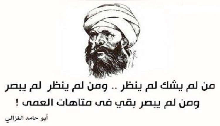 ويعتقد الغزالي أن الشك هو خطوة أولى لا بد منها للوصول إلى علم يقيني صحيح. والعلم اليقيني عند الغزالي هو العلم الذي ينكشف فيه المعلوم انكشافا لا يشوبه ريب، ولا يخالطه وهم، ولا يتسرب إليه إمكان الخطأ، هو علم يورث الأمان، والأمان خلو من كل شبهة، وبه يكون اليقين. ويقول في هذا الخصوص جملة رائعة جاء فيها “الشكوك هي الموصلة إلى الحق، فمن لم يشك لم يَنظر…ومن لم يَنظر لم يُبصر…ومن لم يُبصر بقي في متاهات العمى”. فرحلة اليقين عند الغزالي تبدأ من الصفر بمعنى الشك في الأمور.