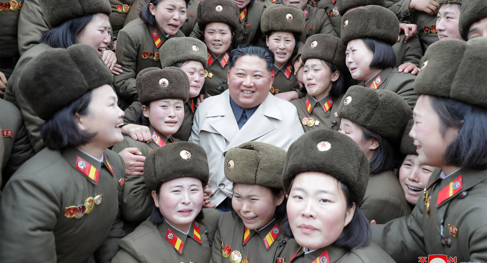 بث التلفزيون الحكومي الكوري الشمالي فيديو لجنديات يغنين ويبكين أمام كيم جونغ أون في وحدة عسكرية، خلال جولة تفتيشية دورية له.
